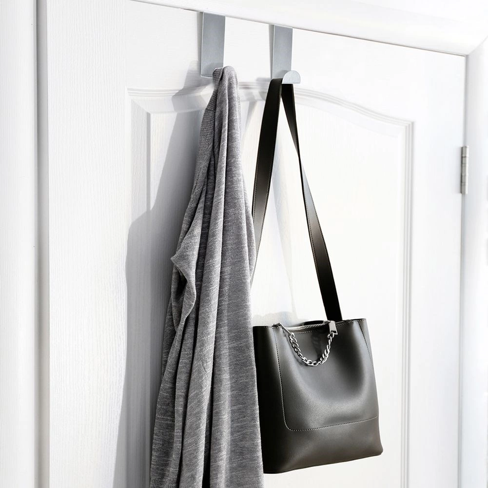 Bővítse a tárolóhelyet pillanatok alatt – csak akassza a horgokat az ajtó vagy a szekrény felső élére, és azonnal lesz hely a pakoláshoz. A matt, semleges ezüst színű rozsdamentes acél minden enteriőrbe illik, kompakt méreteinek köszönhetően pedig nem akadályozza az ajtó becsukását.
