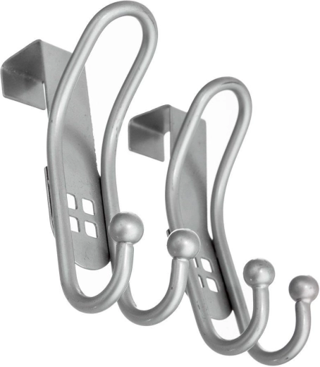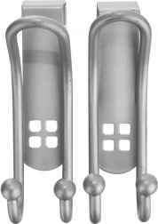 Maximalizálja a helyet fúrás nélkül. A dupla rozsdamentes akasztókat egyszerűen az ajtó, a szekrényajtó vagy a fiókelőlap felső élére akaszthatja. A strapabíró rozsdamentes acél elegáns ezüst kivitelben ideális a fürdőszoba nedves környezetébe és a konyha mindennapos igénybevételéhez.