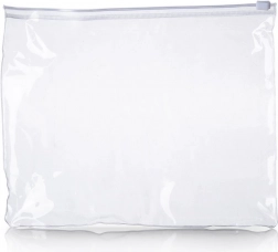 Az átlátszó, cipzáras tasak egyben és rendezetten tartja az összes flakont és tégelyt, készen a kézipoggyászba.