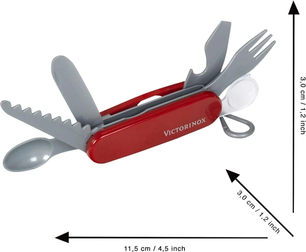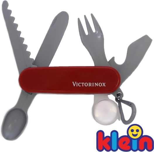A VICTORINOX gyerek zsebkés a KLEIN-től a legendás svájci kés hű, mégis teljesen biztonságos utánzata. A precíz kivitelezésnek, a piros, logós markolatnak és a praktikus karabinernek köszönhetően a kis kalandorok az övükre csíptethetik, és mindig kéznél tarthatják.