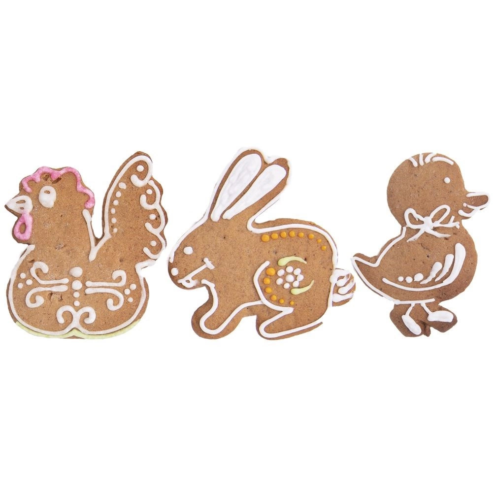Tyúk, nyuszi és kiskacsa egy készletben a játékos, tematikus sütéshez, amely a gyerekeknek és felnőtteknek egyaránt örömet szerez.