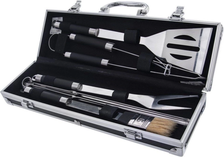 Minden, amire a gondtalan grillezéshez szüksége van, egy helyen. Ez a 9 részes, rozsdamentes acél készlet masszív eszközöket kínál kényelmes, hosszú nyelekkel a biztonságos és biztos irányításhoz a forró grillnél. A praktikus bőrönd fogantyúval és zárakkal áttekinthető tárolást és egyszerű hordozást biztosít.