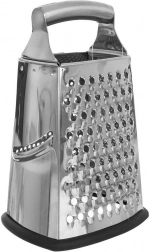 Sokoldalú, négylapos reszelő rozsdamentes acélból, amely finom és durva reszelést, szeletelést és zúzást is tud. A ergonomikus fogásnak és a széles, csúszásgátló talpnak köszönhetően munka közben nem billeg, stabilan áll a munkafelületen. Remek salátákhoz, ételek díszítéséhez és a mindennapi főzéshez.