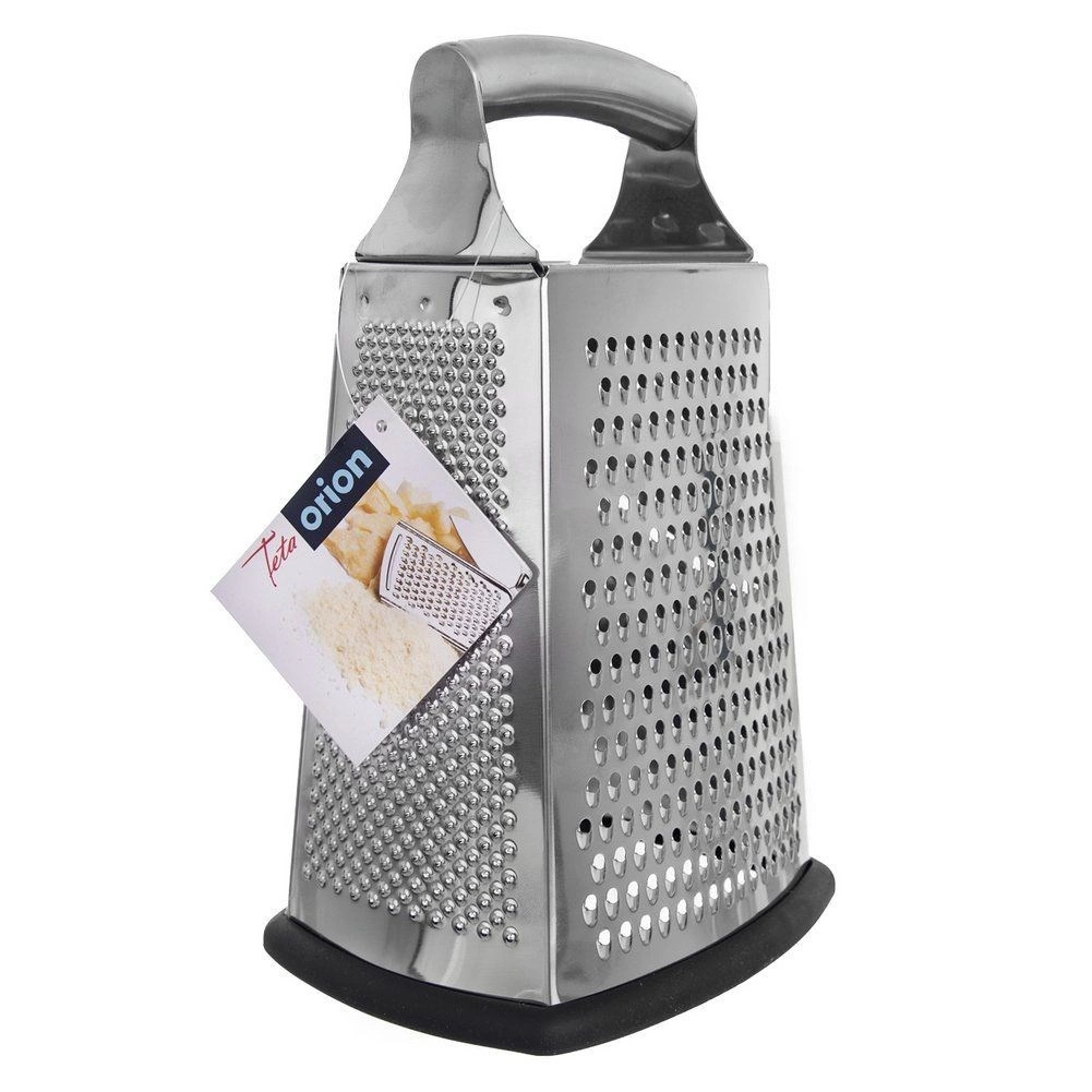 Praktikus, négylapos konyhai reszelő minőségi rozsdamentes acélból a gyors reszeléshez és szeleteléshez. Négy különböző felületet kínál változatos feladatokra, kényelmes fogantyúval és csúszásgátló gumitalppal a biztonságos és stabil használathoz. Mosogatógépben mosható, ideális sajthoz, zöldséghez, gyümölcshöz és fűszerekhez.