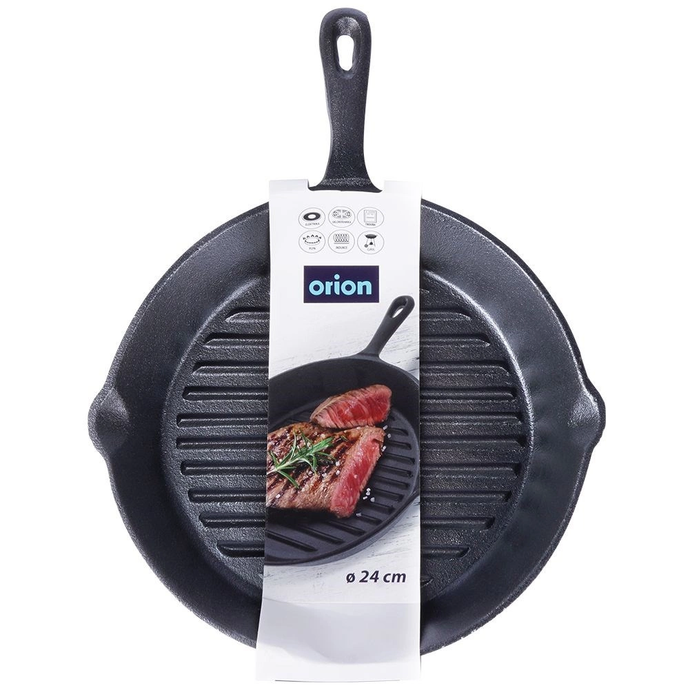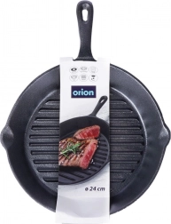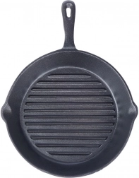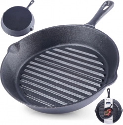 Masszív, 24 cm átmérőjű öntöttvas grillserpenyő tökéletesen megpirított steakekhez, zöldségekhez és burgonyához. Erős felépítése kiválóan tárolja a hőt, markáns rácsnyomot készít, és minden tűzhelytípushoz – indukcióhoz is – valamint sütőbe is alkalmas. Kétlépcsős kiöntők megkönnyítik a szaft leöntését, a magas hőállóság hosszú élettartamot biztosít, a sokoldalú használatot pedig otthon, grillen vagy tábortűznél is értékelni fogja.