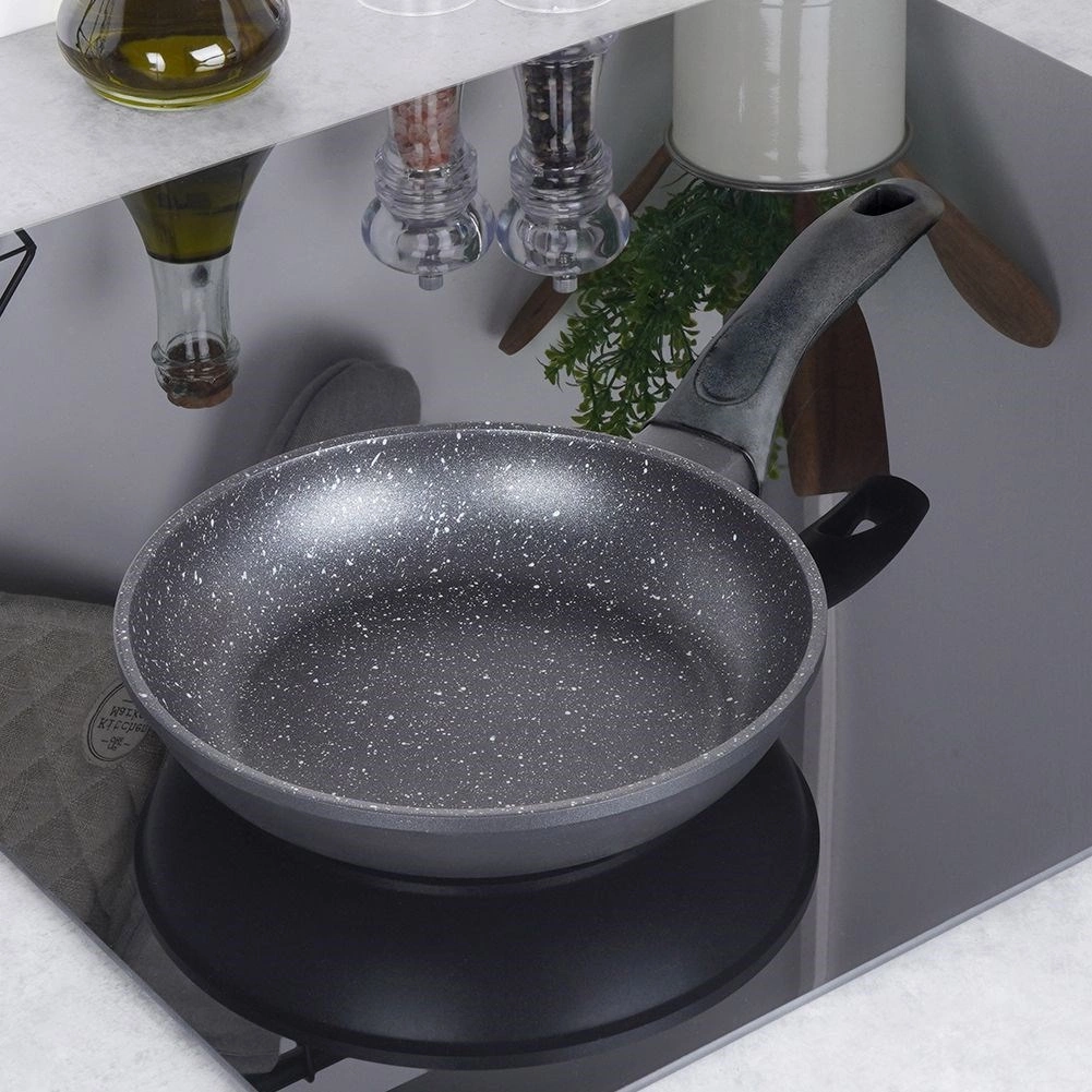 Kompakt, 20 cm átmérőjű gránit serpenyő mindennapi főzéshez. Kínál PFOA- és PTFE-mentes tapadásmentes felületet, egyenletes hőeloszlást és gyors, energiatakarékos sütést. Az ergonomikus nyél nem melegszik fel, a serpenyő alkalmas gáz-, elektromos-, üvegkerámia-, halogén- és indukciós tűzhelyhez, és mosogatógépben mosható.