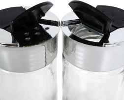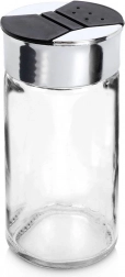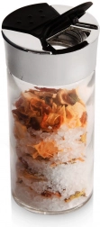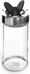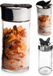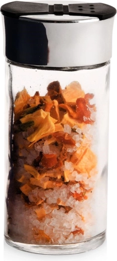 Sokoldalú fűszertartó tiszta üvegből, fémesen fénylő gyűrűvel és fekete, dupla flip kupakkal a kényelmes, pontos fűszeradagoláshoz. Kétféle nyílás teszi lehetővé a finom és a durvább fűszerek szórását túladagolás kockázata nélkül. A zárható fedélfülek megóvják a tartalmat a nedvességtől, és segítenek megőrizni a frissességet és az illatot.