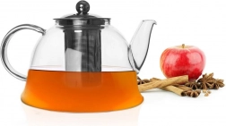 Ez a modern üveg teáskanna megkönnyíti a kedvelt fekete, zöld és ízesített teák, valamint a gyógynövényes főzetek elkészítését. A boroszilikát üveg könnyű, erős és ellenáll a hősokknak -20 °C és +180 °C között (fokozatos melegítés ajánlott). A kivehető, finom rozsdamentes acél szűrő a leveleket és az apró gyógynövényeket is a csészén kívül tartja, így az ital tiszta marad.