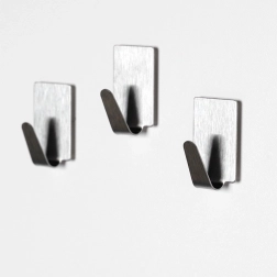 A minimalista akasztó téglalap alakú talppal remekül illik a modern enteriőrökbe. A minőségi rozsdamentes acélnak köszönhetően nedvességálló és bírja a mindennapos használatot. Az öntapadó réteg stabil rögzítést biztosít üvegen, tükrön, sima csempén vagy bútorlap felületén.