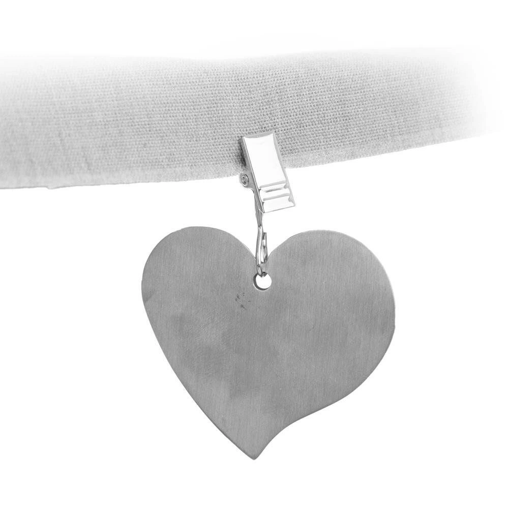 Stílusos és praktikus, szívalakú terítőcsipeszek, amelyek szélben is biztonságosan a helyén tartják a terítőt. Matt rozsdamentes acélból készülnek a hosszú élettartam érdekében, könnyű felhelyezéssel az asztal peremére, és dekoratív megjelenéssel minden teraszon, erkélyen és a kertben történő étkezéshez.