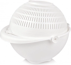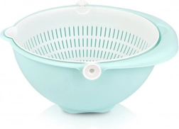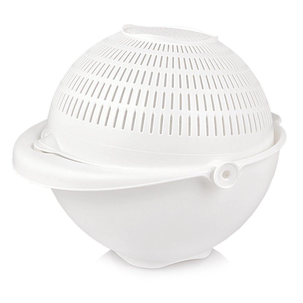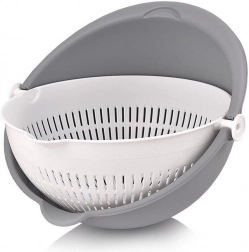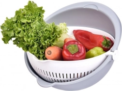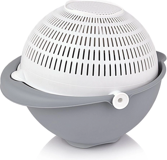 Fedezze fel az okos megoldást a mindennapi konyhai feladatokra. A tálba helyezett forgó szűrő lehetővé teszi a gyors átöblítést és vízelvezetést anélkül, hogy az alapanyagokat át kellene önteni. Döntéskor a szűrő vízszintes marad, így a tartalom biztonságban van, a víz pedig a külső tálba folyik.