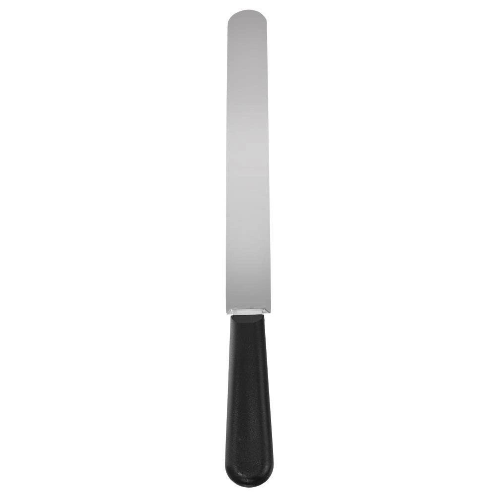 Ez a cukrász spatula a lapát és a kés funkcióját ötvözi, így kiválóan szolgál torták és sütemények előkészítésénél, formázásánál és díszítésénél. A minőségi rozsdamentes acélnak köszönhetően rendkívül tartós, míg a fekete ergonomikus markolat biztos fogást és kényelmes munkát nyújt.