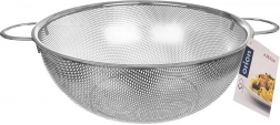 Ez a tágas, rozsdamentes acél ANETT szűrő finom hálójával hatékonyan visszatartja az élelmiszereket, miközben gyorsan elvezeti a vizet. A két kényelmes fogantyú és a stabil lábak biztonságos, egyszerű kezelést tesznek lehetővé. A bőkezű 36 × 28,5 × 11 cm-es méreteknek köszönhetően egyszerre nagyobb mennyiségeket is kényelmesen szűrhet.