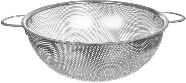 A finom rozsdamentes acél szövet gyors vízelvezetést biztosít, miközben biztonságosan megtartja az apró alapanyagokat is, mint a rizs vagy az apró bogyós gyümölcsök.