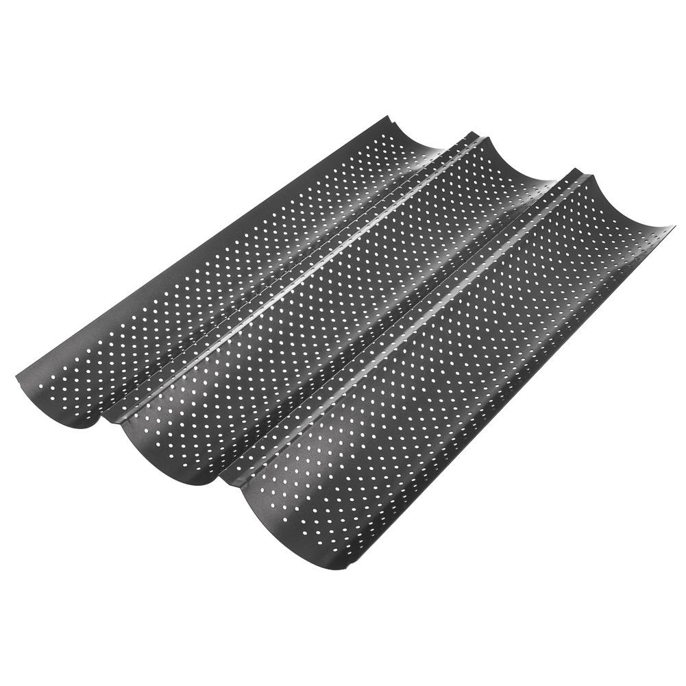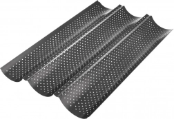 Praktikus baguette sütőforma, amellyel egyszerre akár 3 ropogós baguette süthető. Tartós szénacélból készült, tapadásmentes felülettel, és perforációval a kiváló légáramlásért és az egyenletes átsülésért. Gáz- és elektromos sütőben is használható, könnyen tisztítható, és mosogatógépben is biztonságos.
