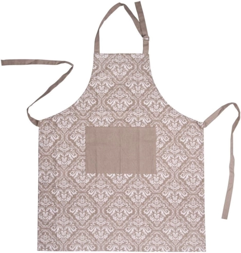 Fedezze fel a kényelmet és a védelmet a kiváló minőségű pamutból készült, 71 × 86 cm-es kötényünkkel. Az univerzális szabás hosszú megkötőkkel könnyű illeszkedést tesz lehetővé bármilyen testalkathoz, a bézs damaszt minta pedig elegáns megjelenést kölcsönöz konyhájának.