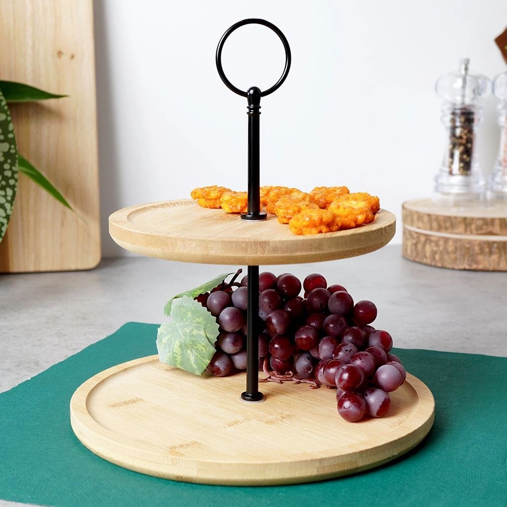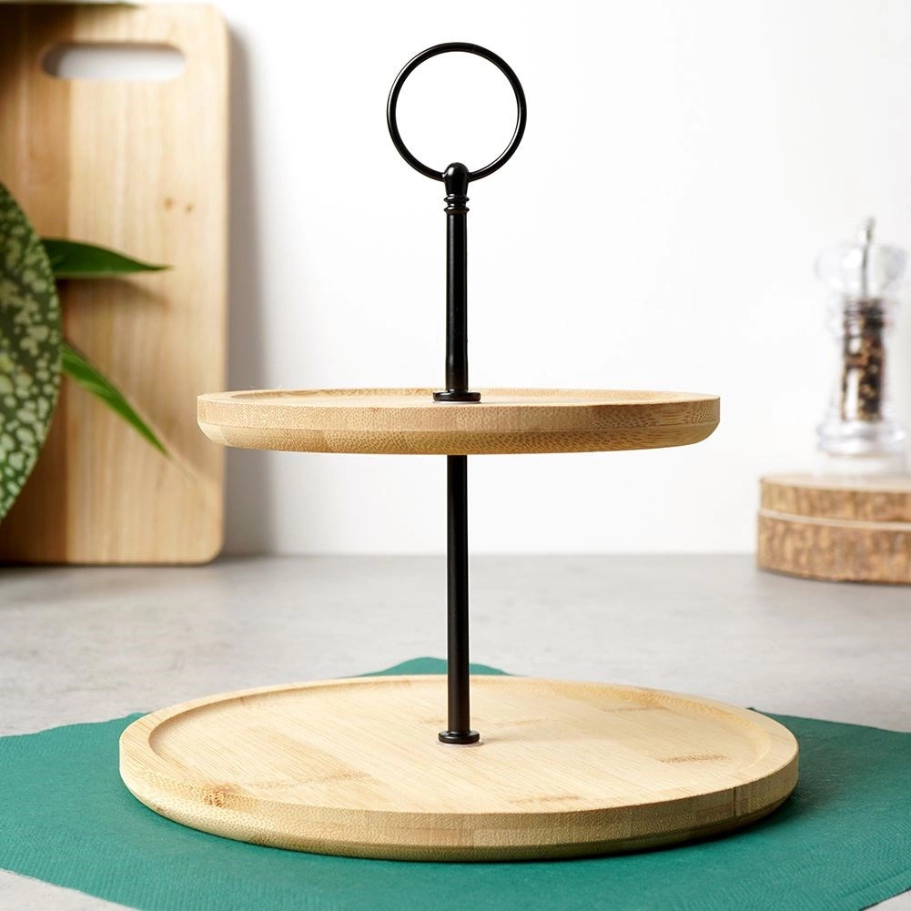 Dobja fel asztalát egy elegáns kiegészítővel: kétszintes, természetes bambusz állvány fekete színű, masszív fém szerkezettel. Ideális cupcake-ekhez, kekszekhez, minidesszertekhez, gyümölcsökhöz és sós falatokhoz. A két szint helyet takarít meg, miközben látványos tálalást biztosít.