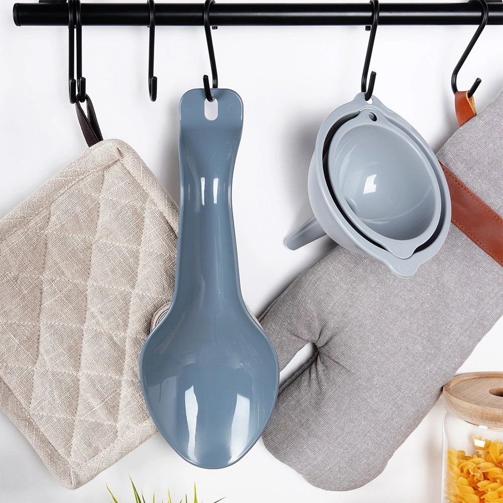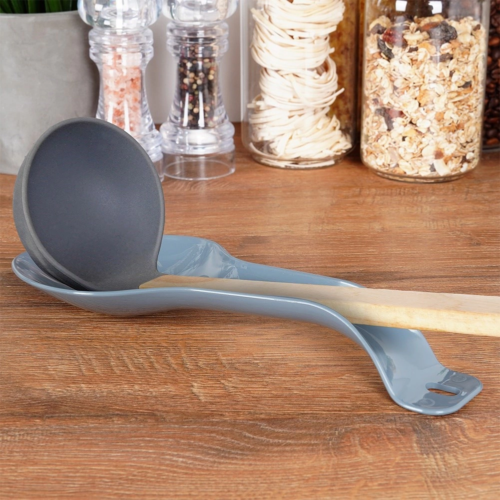 Tartsa rendben a konyhai munkaterületet ezzel a szürke konyhai eszközpihentető alátéttel. Praktikus formája alkalmas fakanalakhoz, merőkanalakhoz és lapátokhoz, tartós műanyagból készült, amely könnyen tisztítható, mosogatógépben mosható, és ellenáll a forró eszközöknek is.