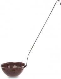 Stílusos, retró dizájnú zománcozott merőkanál, amely bármely konyhába illik. A mély kanál megkönnyíti a folyadékok pontos kiöntését, a hosszú és karcsú nyél pedig kényelmes és biztonságos tálalást biztosít még magas fazekakból is. A zománc higiénikus, tartós és alkalmas a mindennapi használatra.