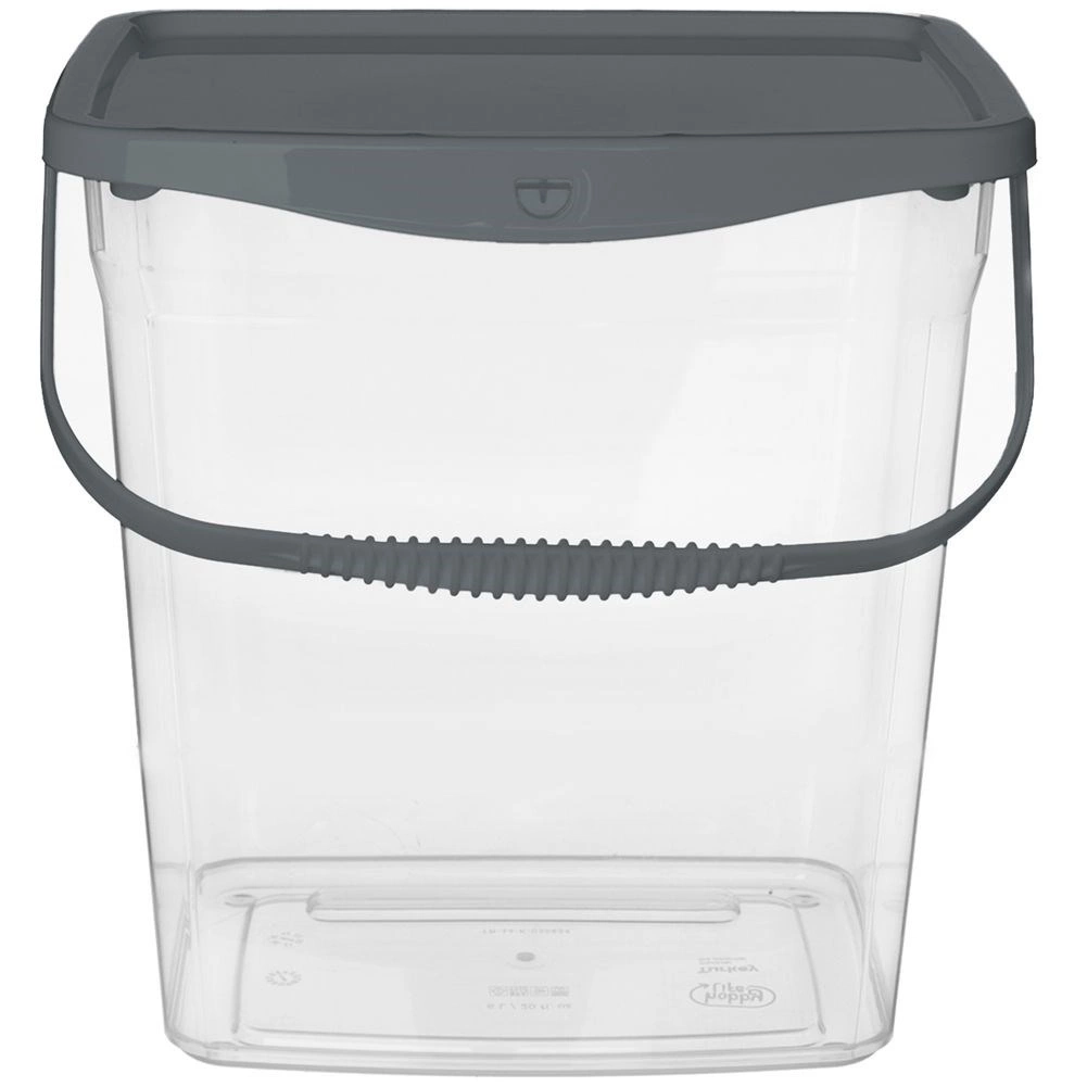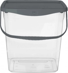 Praktikus, 6 l űrtartalmú tárolódoboz mosóporhoz, kapszulákhoz és egyéb mosószerekhez. Az átlátszó testnek köszönhetően könnyen ellenőrizhető a tartalom, az erős, reteszelhető fedél biztos zárást nyújt, a kényelmes fogantyú pedig megkönnyíti a hordozást. Tartós, BPA-mentes műanyagból készült, -25 °C és +95 °C közötti hőmérsékletre alkalmas, és könnyen tisztítható – mosogatógépben mosható.
