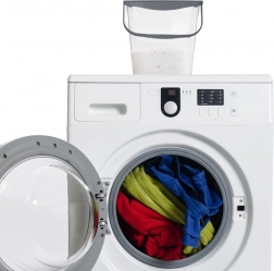 A biztonságosan zárható fedél megóvja a mosószereket a nedvességtől és a kiszóródástól, rendet tartva a mosókonyhában.