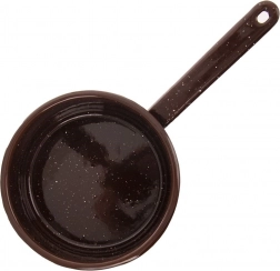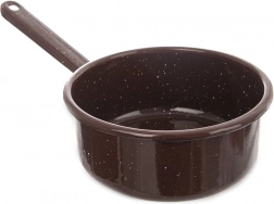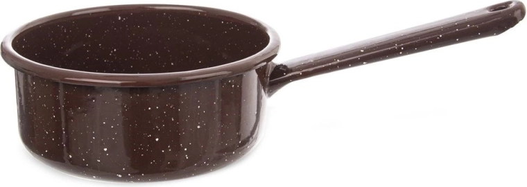 Praktikus, 900 ml űrtartalmú és 14 cm átmérőjű barna, finoman márványozott zománcozott nyeles lábas, ideális melegítéshez, főzéshez és pároláshoz kisebb adagok és szószok készítéséhez. Alkalmas gáz-, elektromos, üvegkerámia, halogén és indukciós főzőlapokra is, hosszú nyéllel és akasztónyílással. Könnyen tisztítható, mosogatógépben mosható.