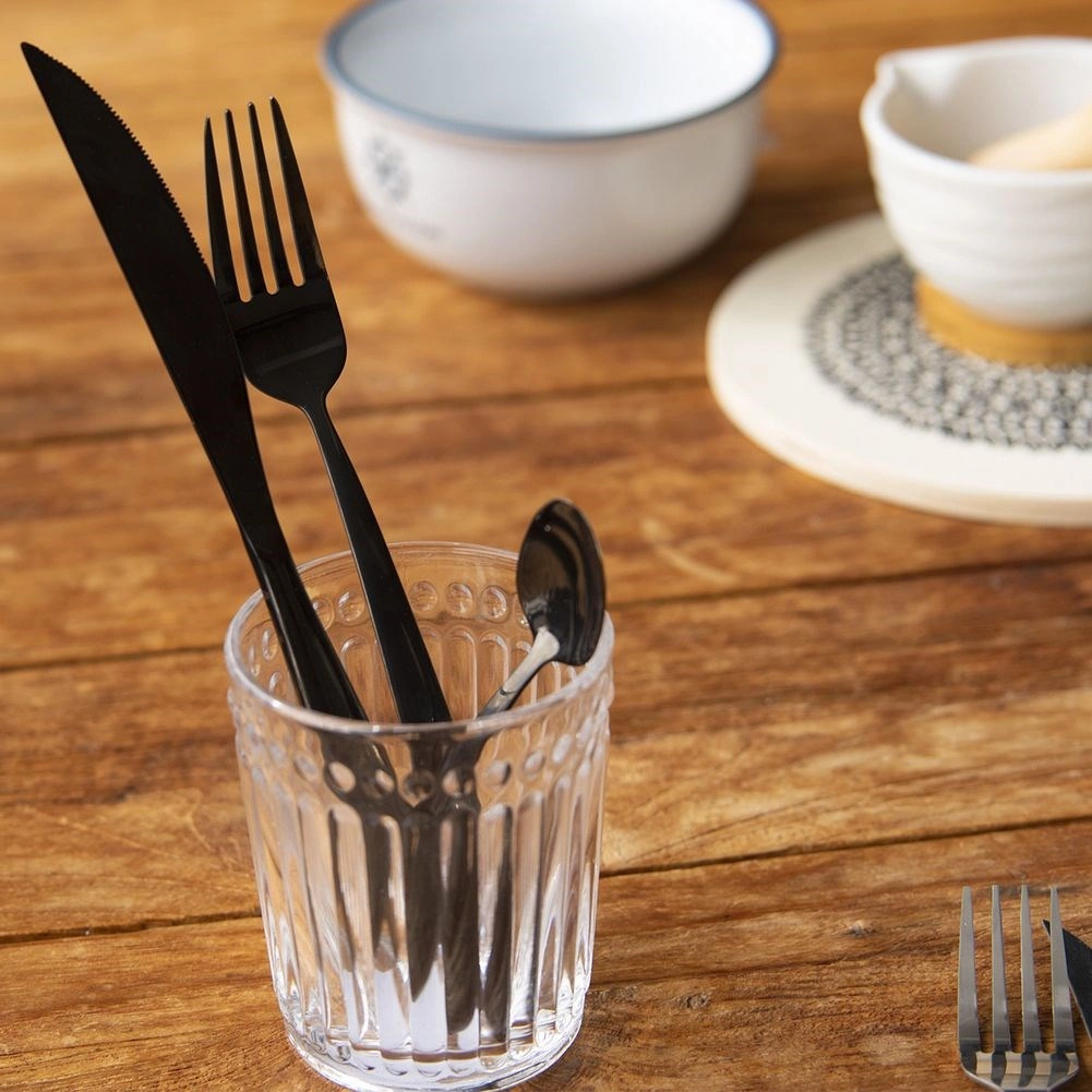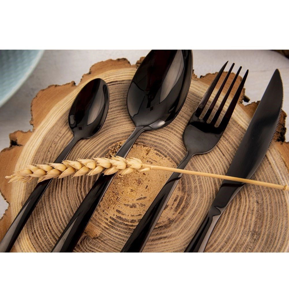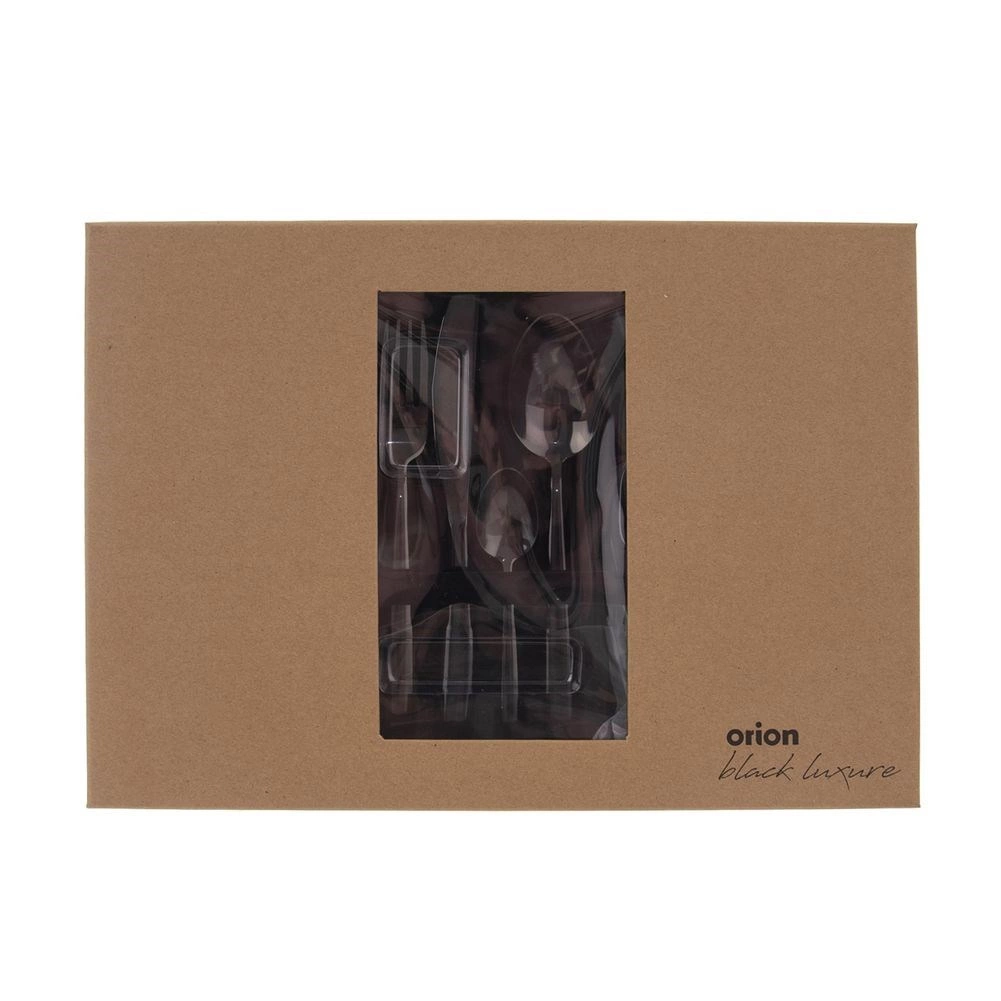Az ORION Black Luxury evőeszközkészlet modern megjelenésével és tartós kivitelével tűnik ki. A fekete, fényes, PVD felületű bevonat különleges karaktert ad az asztalnak, és kiválóan illik klasszikus és modern edényekhez egyaránt. Ideális családi vacsorákhoz, ünnepi lakomákhoz és mindennapos használatra.