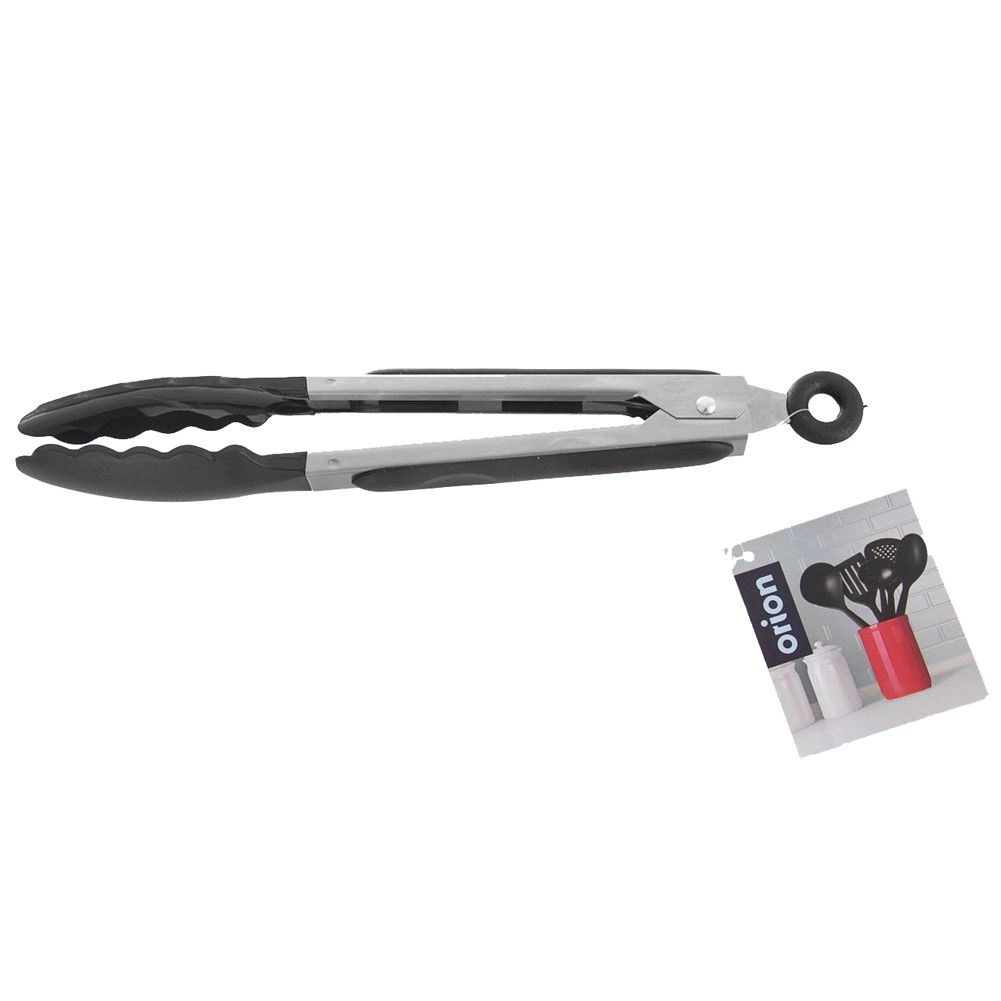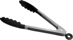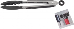 Praktikus konyhai fogó, amely kiválóan alkalmas forgatáshoz, tálaláshoz és ételek kiemeléséhez. A masszív rozsdamentes acél test stabil fogást ad, míg a bordázott szilikon végek biztonságosan tartják az ételeket, és nem karcolják a teflon-, kerámia- vagy más tapadásmentes felületeket. Az integrált fül akasztóként és zárként is működik a helytakarékos tárolásért.