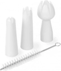 A készlet 3 különböző fejet tartalmaz látványos díszítésekhez desszerteken, tortákon és italokon. Könnyen cserélhetők és tisztíthatók.