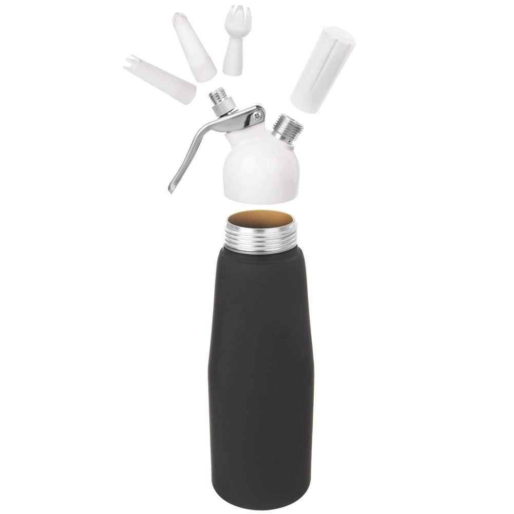 Készítsen tökéletesen levegős tejszínhabot néhány másodperc alatt. A 680 ml-es szifonnal egyszerre körülbelül 250–330 ml kész habot állíthat elő. A fekete alumíniumtest és a fehér fej fém karral együtt tartósságot, biztonságos használatot és hosszú élettartamot biztosít. A három cserélhető fúvóka elegáns díszítések készítését teszi lehetővé desszerteken, tortákon, italokon és más fogásokon.