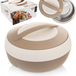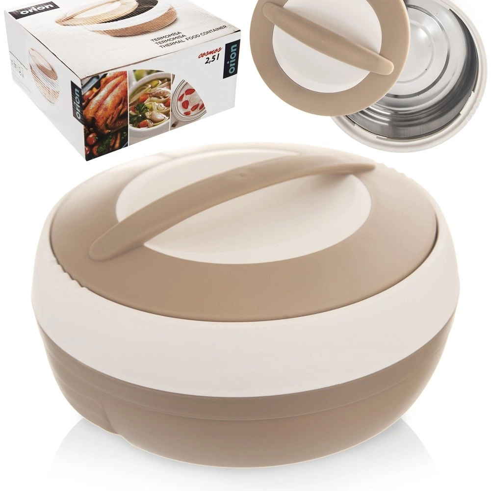 Praktikus, 2,5 l űrtartalmú termosztál meleg és hideg ételek tárolására. A rozsdamentes acél belső rétegnek és a könnyen zárható, fogantyús fedélnek köszönhetően az étel akár 2 órán át meleg marad. Könnyű, strapabíró és ideális hordozáshoz ebédhez, levesekhez és desszertekhez. Eredeti ORION márkatermék.