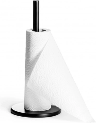Praktikus és stabil papírtörlő-tartó elegáns matt fekete kivitelben. A 33 cm magasságnak és a 15 cm átmérőjű talpnak köszönhetően a standard tekercsekhez illeszkedik, és megkönnyíti az egyszerű tépést. Stabil, csúszásmentes talp, tartós fémkonstrukció és univerzális méret minden konyhai tekercshez.