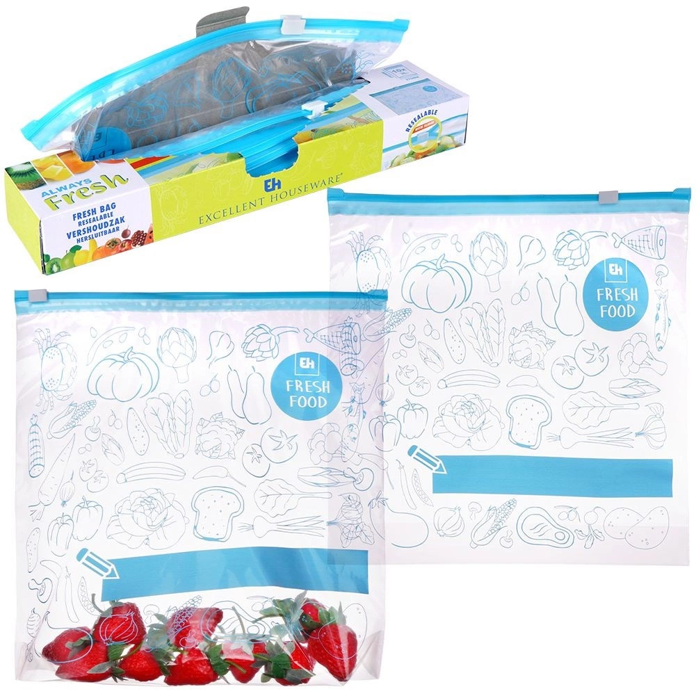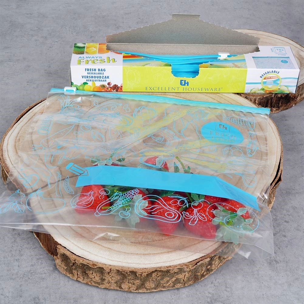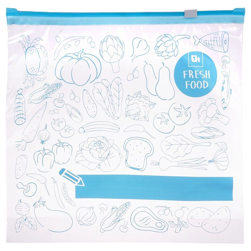 Tartsa tovább frissen az élelmiszereket a 3 literes, 28,5 × 27 cm méretű visszazárható tasakokkal. A megbízható csúszka légmentes zárást biztosít, így hűtőben és fagyasztóban egyaránt használhatók. Az átlátszó kivitelhez praktikus feliratozható felület társul, hogy mindig tudja, mit és mikor helyezett el.