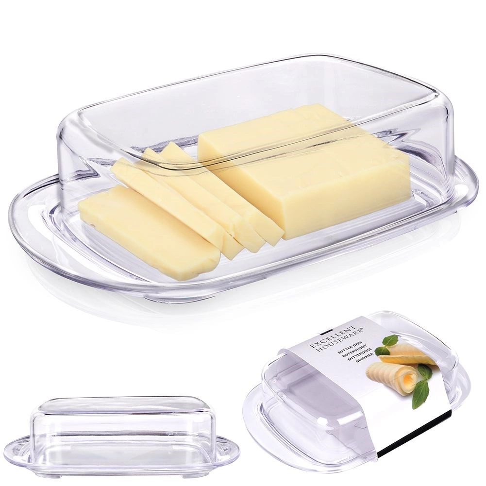 Ez az elegáns, átlátszó vajtartó ideális a vaj mindennapos tárolásához és tálalásához. Az átlátszó kivitel gyors rálátást biztosít a tartalomra, míg a pontosan illeszkedő fedél segít frissen tartani a vajat, és megvédi a környező szagoktól.