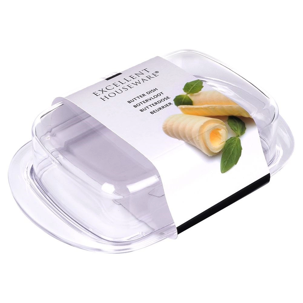 Az átlátszó fedél szorosan illeszkedik a tálcához, így a vaj tovább marad friss, és védett a hűtőszagoktól.