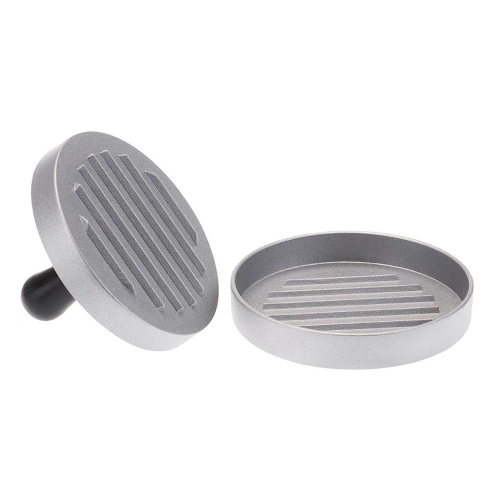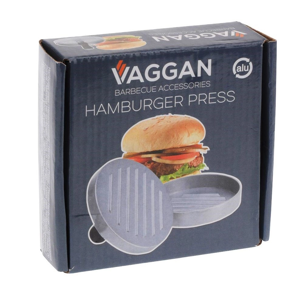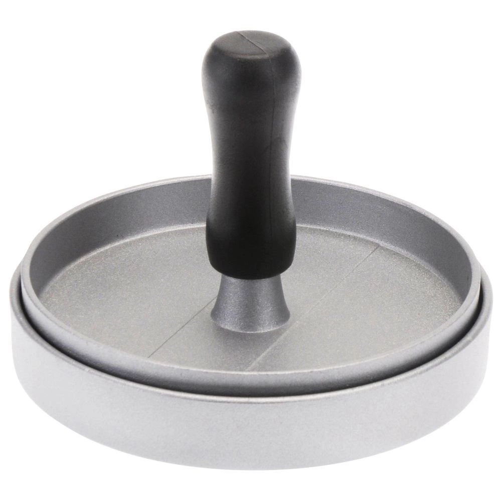 Praktikus, 12 cm átmérőjű hamburgerprés a gyors és pontos formázáshoz. Egységes pogácsákat készíthetsz vele ideális vastagsággal és tömeggel. A strapabíró alumínium és az ergonomikus fogantyú kényelmes használatot, könnyű tisztítást és megbízható eredményeket garantál otthon, a grillnél és a vendéglátásban is.