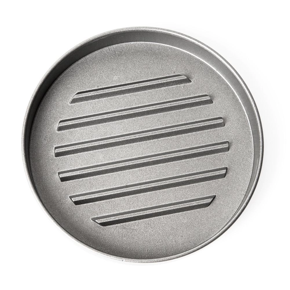 A bordázott alj egységes formát és vastagságot biztosít, így a hamburgerek egyenletesen sülnek át és professzionálisan néznek ki.