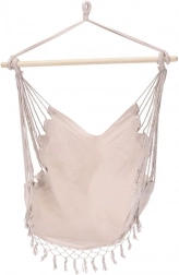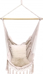 Az elegáns, bézs színű hamaka függőfotel remek választás kertbe, erkélyre, teraszra és beltérbe egyaránt. Az egypontos felfüggesztés helytakarékos, és meghitt olvasó- vagy pihenősarkot teremt. A stabilizáló fa rúddal ellátott masszív kialakítás kényelmes ülést és biztonságos ringatózást biztosít.