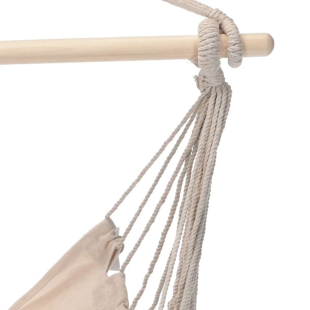 A függőfotel tartja a formáját, és kényelmes ülést biztosít a 95 cm hosszú, minőségi fa rúddal, amely egyenletesen oszlatja el a súlyt.