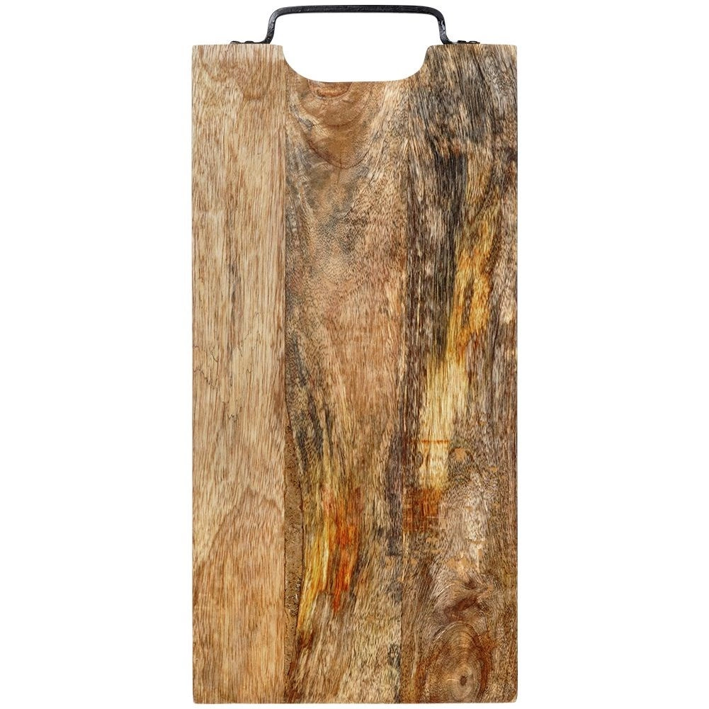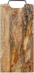 Masszív, 44 × 19 cm méretű és 2 cm vastag mangófa vágódeszka, ideális szeleteléshez és tálaláshoz. Nagy munkafelülettel, praktikus fém fogantyúval a könnyű hordozáshoz vagy felakasztáshoz, valamint természetesen ellenálló felülettel rendelkezik, amely nem veszi át a szagokat és gyorsan szárad. A stílusos, enyhén indusztriális megjelenést a fekete fém fogantyú emeli ki.