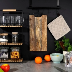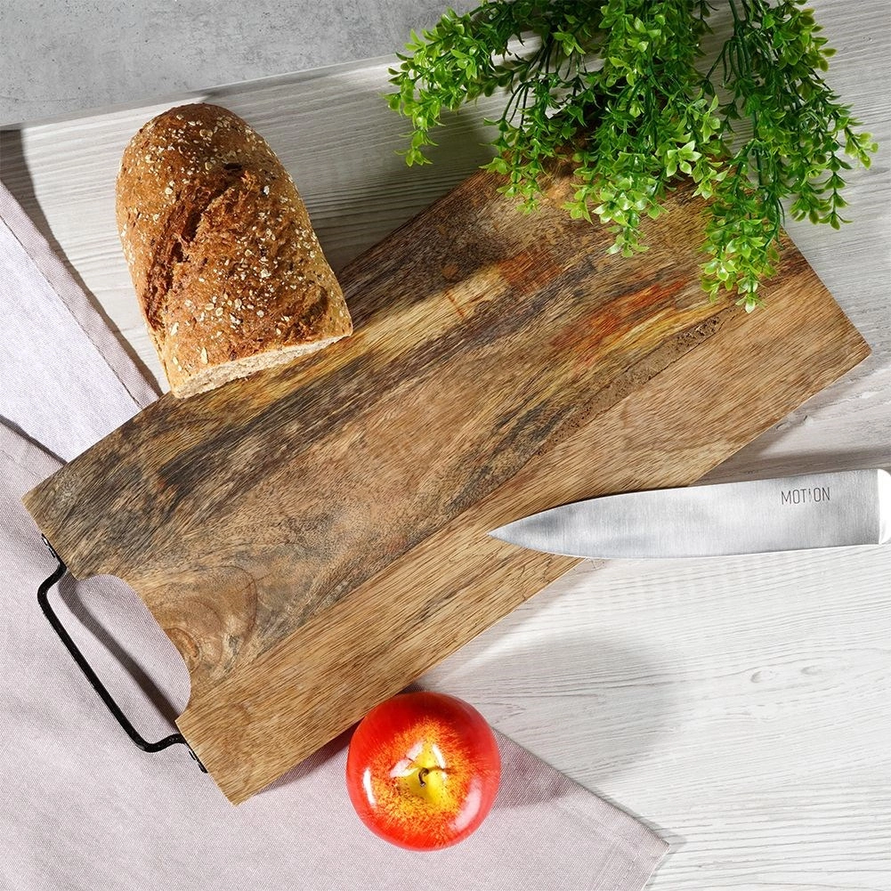 Adj konyhádnak stílust és funkcionalitást. A masszív mangófa deszka ellenáll a nedvességnek és a deformációnak, nem veszi át a szagokat, és könnyen tisztítható. A tágas felületnek köszönhetően kényelmesen szeletelhetsz pékárut, zöldséget vagy húst, és elegánsan tálalhatsz sajtokat, felvágottakat vagy előételeket.