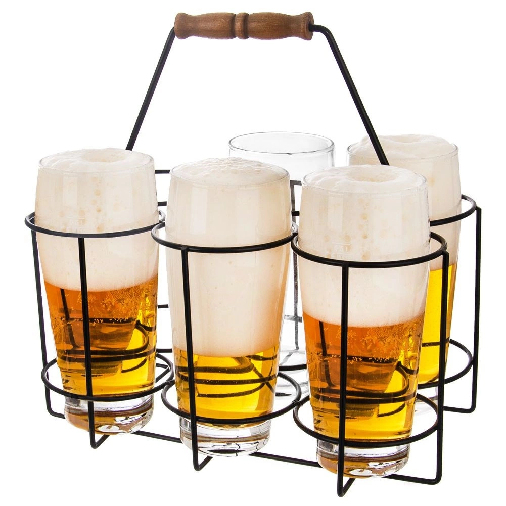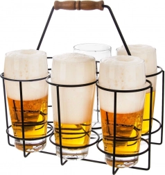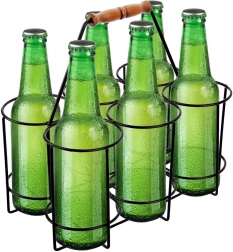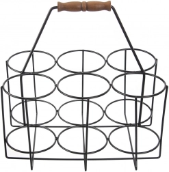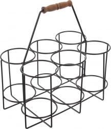 Tartós fém kosár palackok vagy poharak hordozásához, amely biztonságos rendszerezést és kényelmes kezelhetőséget kínál. A hat különálló, gyűrűs tartó szilárdan a helyén tartja az edényeket, míg a fa fogantyú kényelmes fogást ad. Remek megoldás otthonra, kertbe, teraszra, valamint italok felszolgálásához grillezéskor.