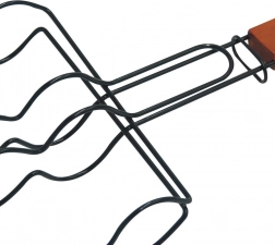 A két részből álló, zárral ellátott kosár szorosan rögzíti a kolbászokat vagy a nyársakat, így forgatás közben semmi sem esik ki, és az átsülés egyenletes lesz.