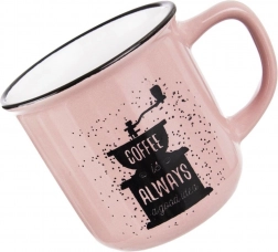 Élvezze kedvenc forró italát egy kényelmes és elegáns bögréből, amely a praktikusságot vonzó dizájnnal ötvözi. A rózsaszín, pöttyös hatású kerámia testet fekete perem és kávédarálós motívum egészíti ki, így a bögre remekül illik modern és rusztikus konyhába egyaránt.