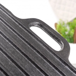 A nehéz öntöttvas egyenletes felhevülést és hosszan tartó hőmegtartást biztosít – ideális szaftos steakekhez és ropogós kérgű fogásokhoz.