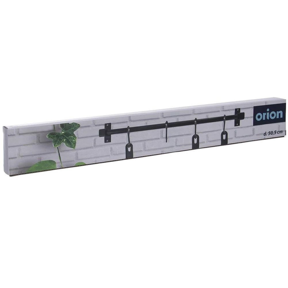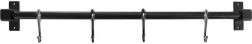 Praktikus, 50,5 cm hosszú fali reling négy akasztóval, hogy a konyhai eszközök mindig kéznél és áttekinthetően rendezve legyenek. Masszív, fekete alumínium kivitelének köszönhetően tartós, stabil, és remekül illik a modern konyhákba. Egyszerű szerelés minden szükséges elemmel a csomagban, valamint sokoldalú felhasználás kanalakhoz, lapátokhoz és merőkanalakhoz.