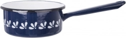 Praktikus zománcozott lábas hosszú nyéllel, 600 ml űrtartalommal és 12 cm átmérővel, elegáns sötétkék színben fehér dekorral. Alkalmas minden típusú tűzhelyhez, beleértve az indukciót is, ideális melegítéshez, főzéshez és kisebb adagok párolásához. A zománcozott acél tartós felülete könnyen tisztítható és egészségre ártalmatlan.