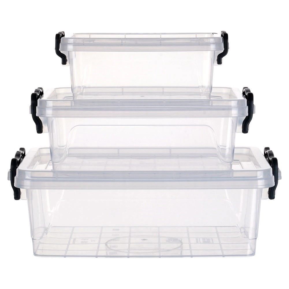 Praktikus, három átlátszó ételtároló dobozból álló szett 600 ml, 1,2 l és 2 l űrtartalommal, megbízható, klipszes fedőkkel. A dobozok légmentesen zárnak, BPA-mentesek, és alkalmasak mosogatógépbe, mikrohullámú sütőbe (+95 °C-ig), valamint hűtőbe és fagyasztóba (−25 °C-ig). Ideálisak az ételek frissen tartására, szállítására és rendszerezésére otthon és irodában.