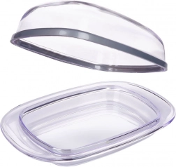 Ez a minőségi műanyag vajtartó átlátszó fedéllel ideális a mindennapi használathoz. Higiénikus vajtárolást biztosít a hűtőben, és stílusos tálalást közvetlenül az asztalon. Az átlátszó kivitelnek köszönhetően mindig szem előtt tartható a tartalom, a klasszikus design pedig bármilyen terítékkel harmonizál.