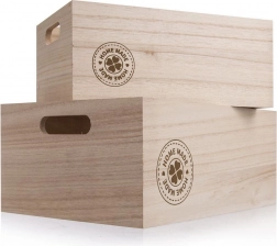 A Home Made fa tárolóláda természetes fából készült, tartósságával és időtálló megjelenésével tűnik ki. A praktikus 31 × 21 × 13 cm-es méretnek köszönhetően könnyen elhelyezhető polcon, komódon vagy íróasztalon. Az oldalsó fogantyúk kényelmes hordozást biztosítanak még megtöltve is.